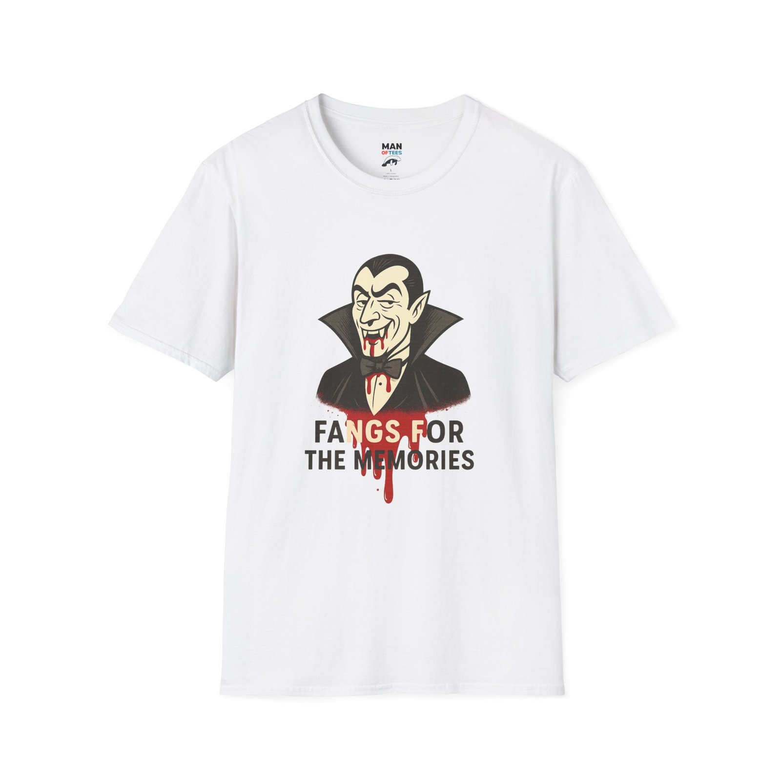 Halloween Vampire T-Shirt, Fangs for the Memories Tee, Unisex Softstyle Shirt, Spooky Costume Top, October Fun Apparel