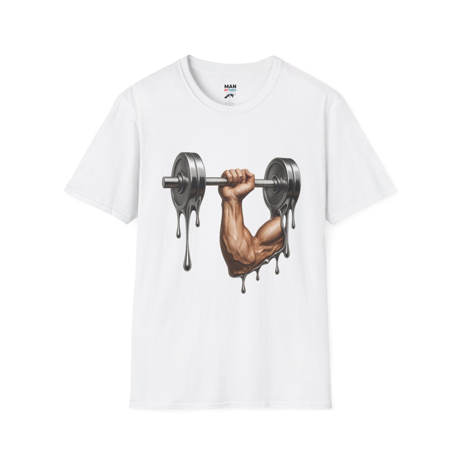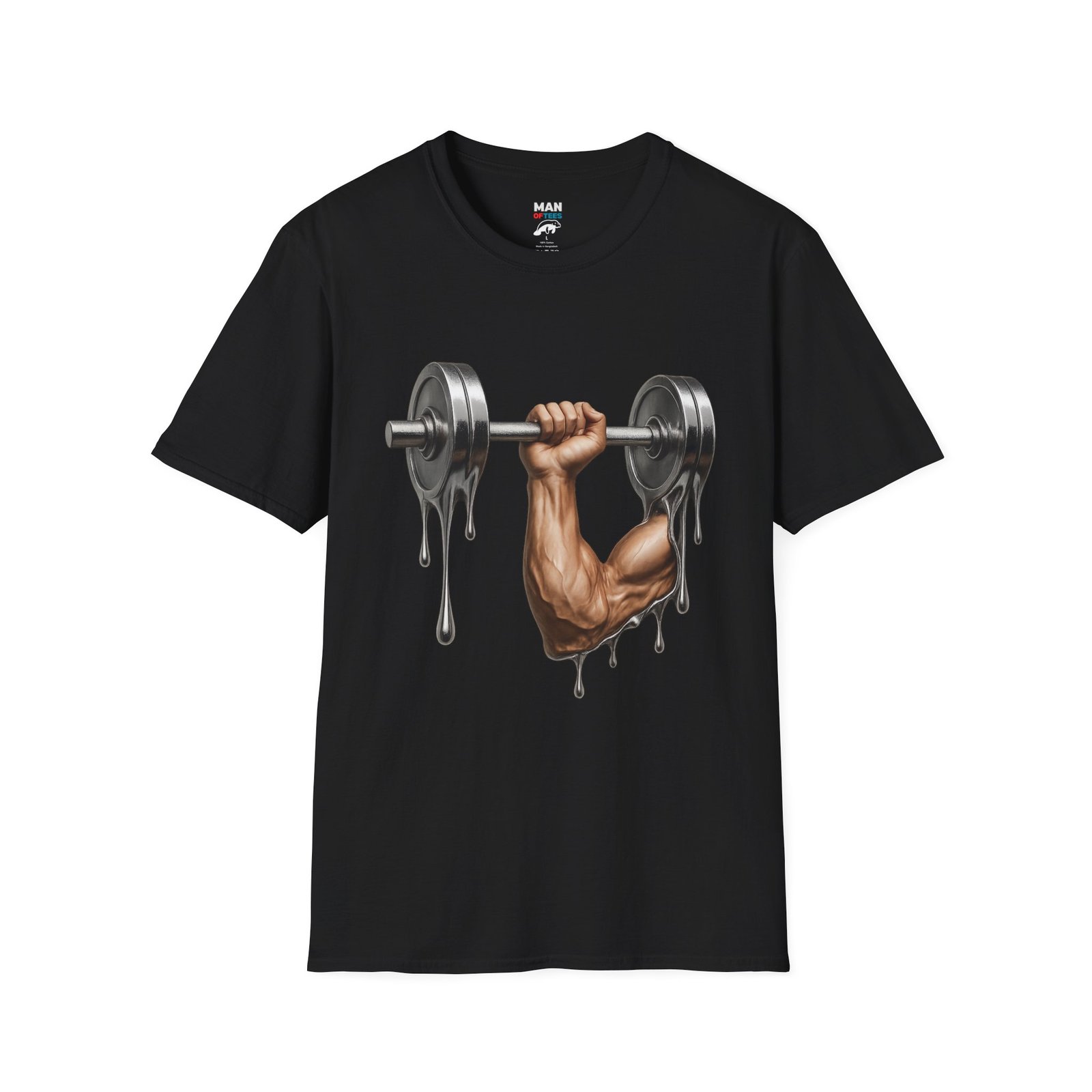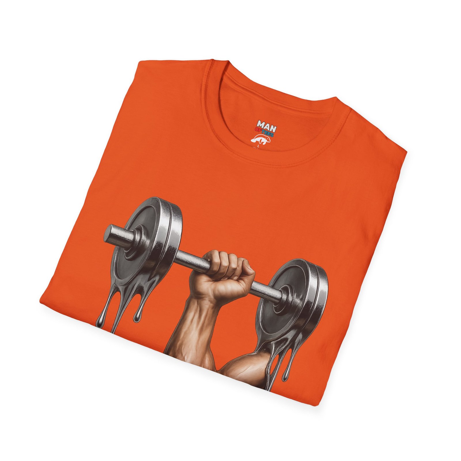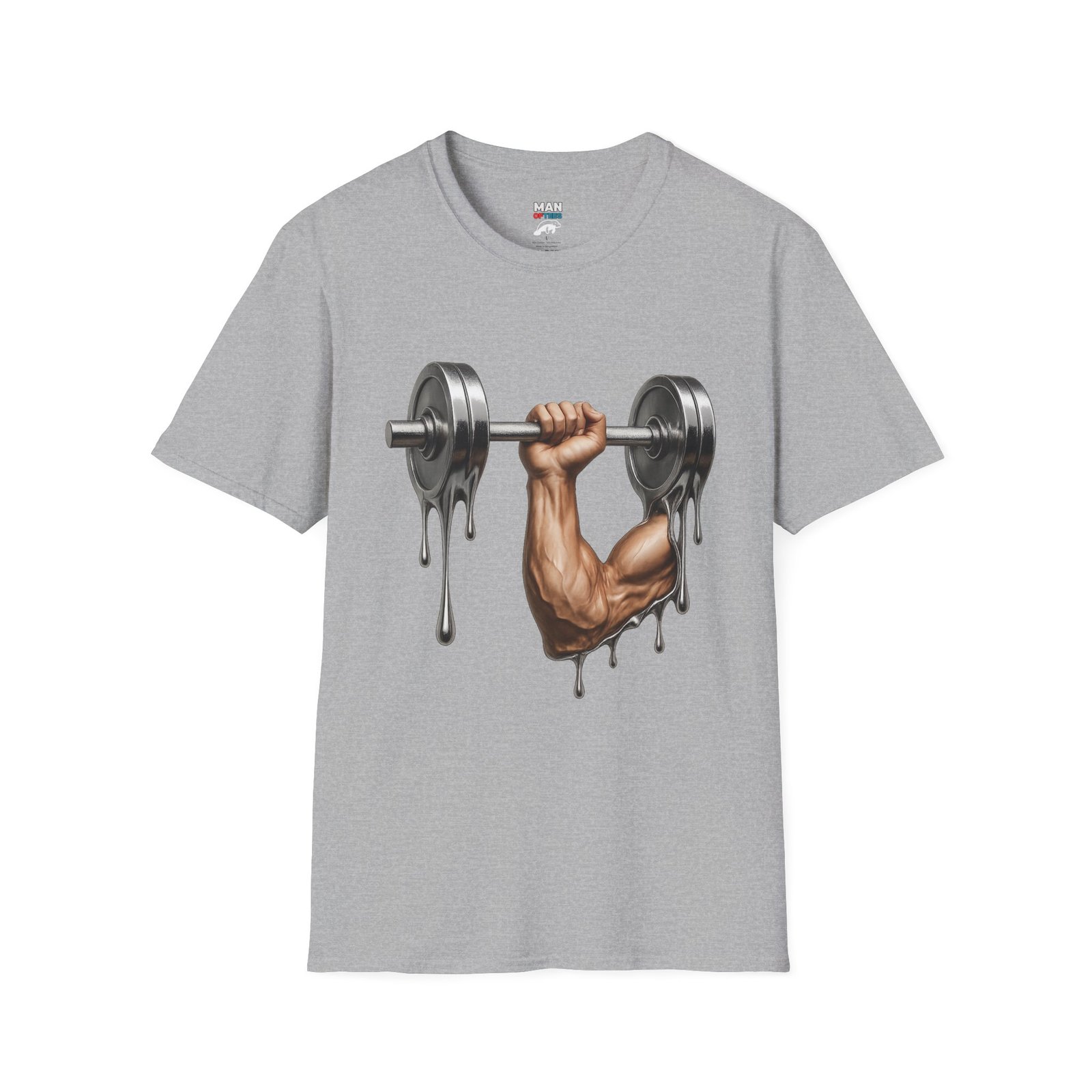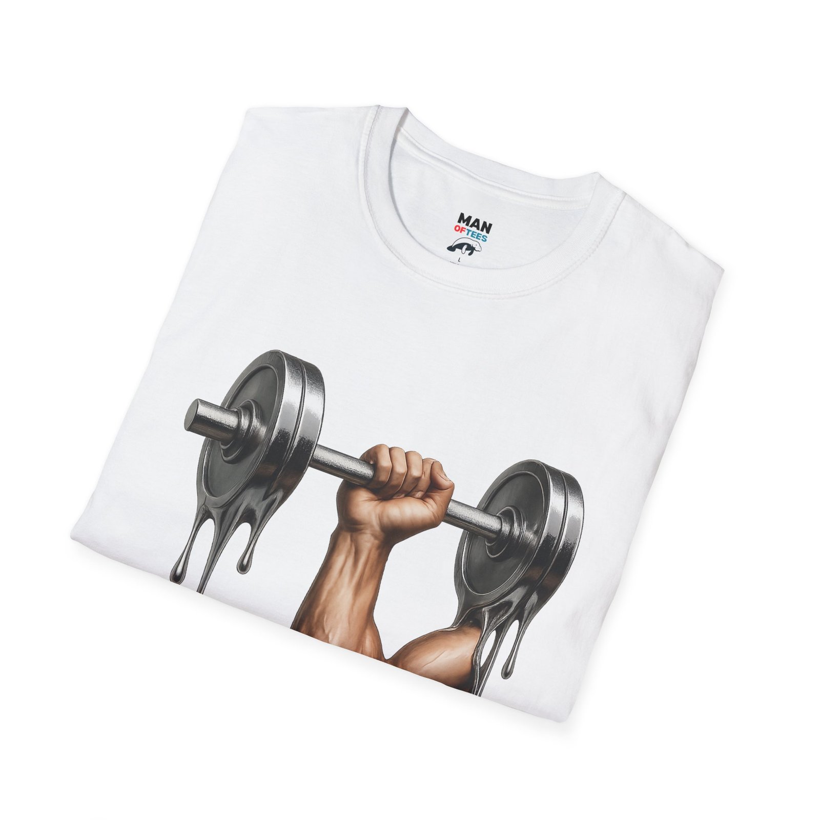 A unique T-Shirt featuring a design of a muscular arm holding a melting weight, giving off a strong and resilient vibe. Perfect for fitness enthusiasts and gym lovers. Ideal for occasions like muscle building milestones, gym anniversaries, or fitness celebrations.