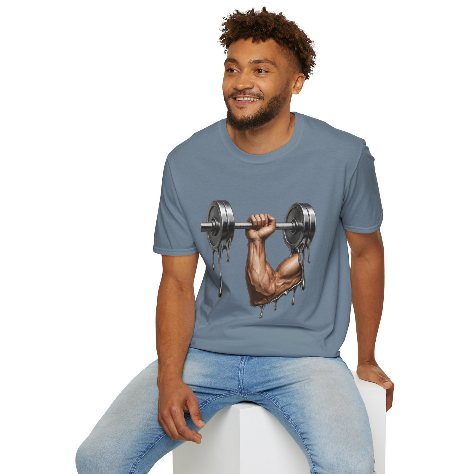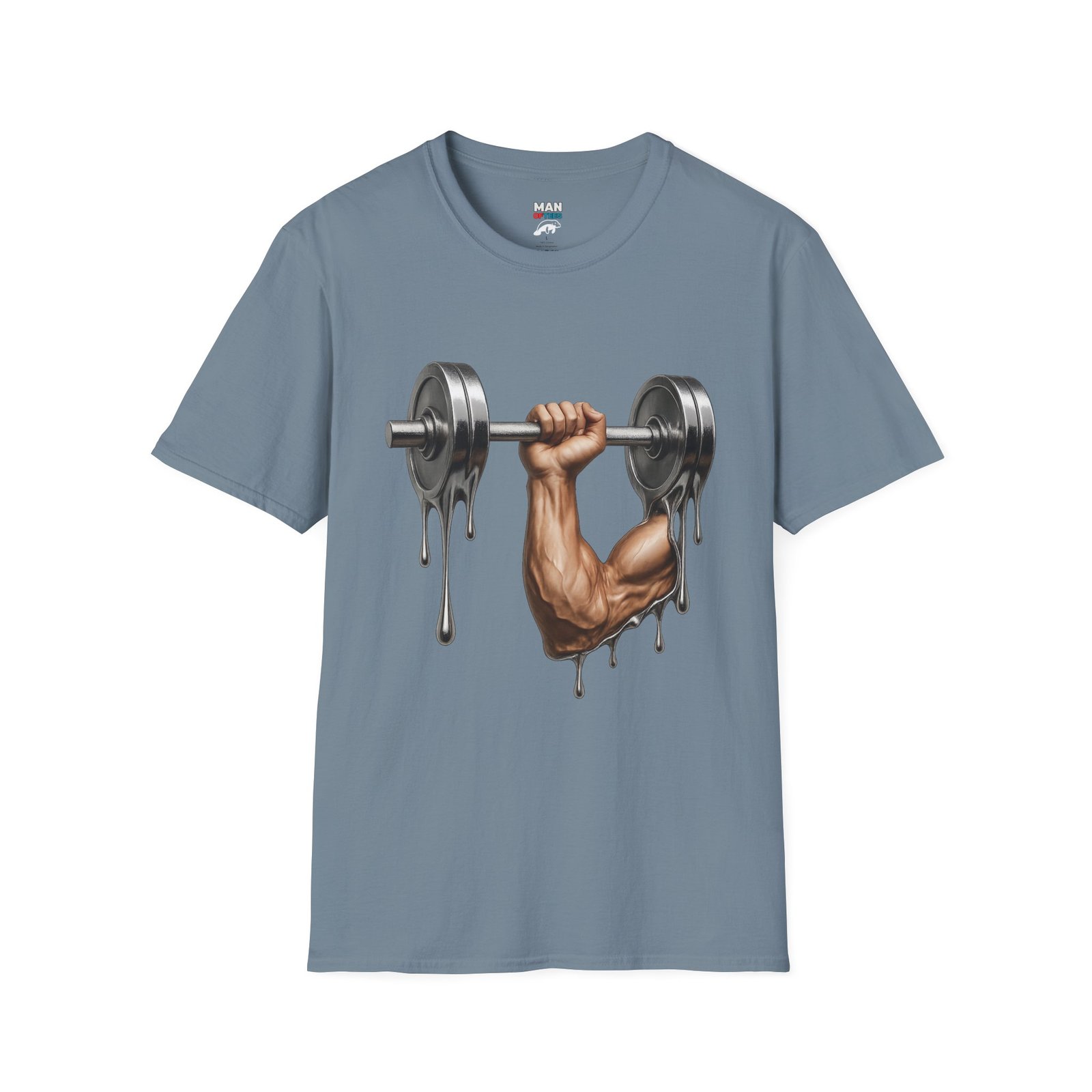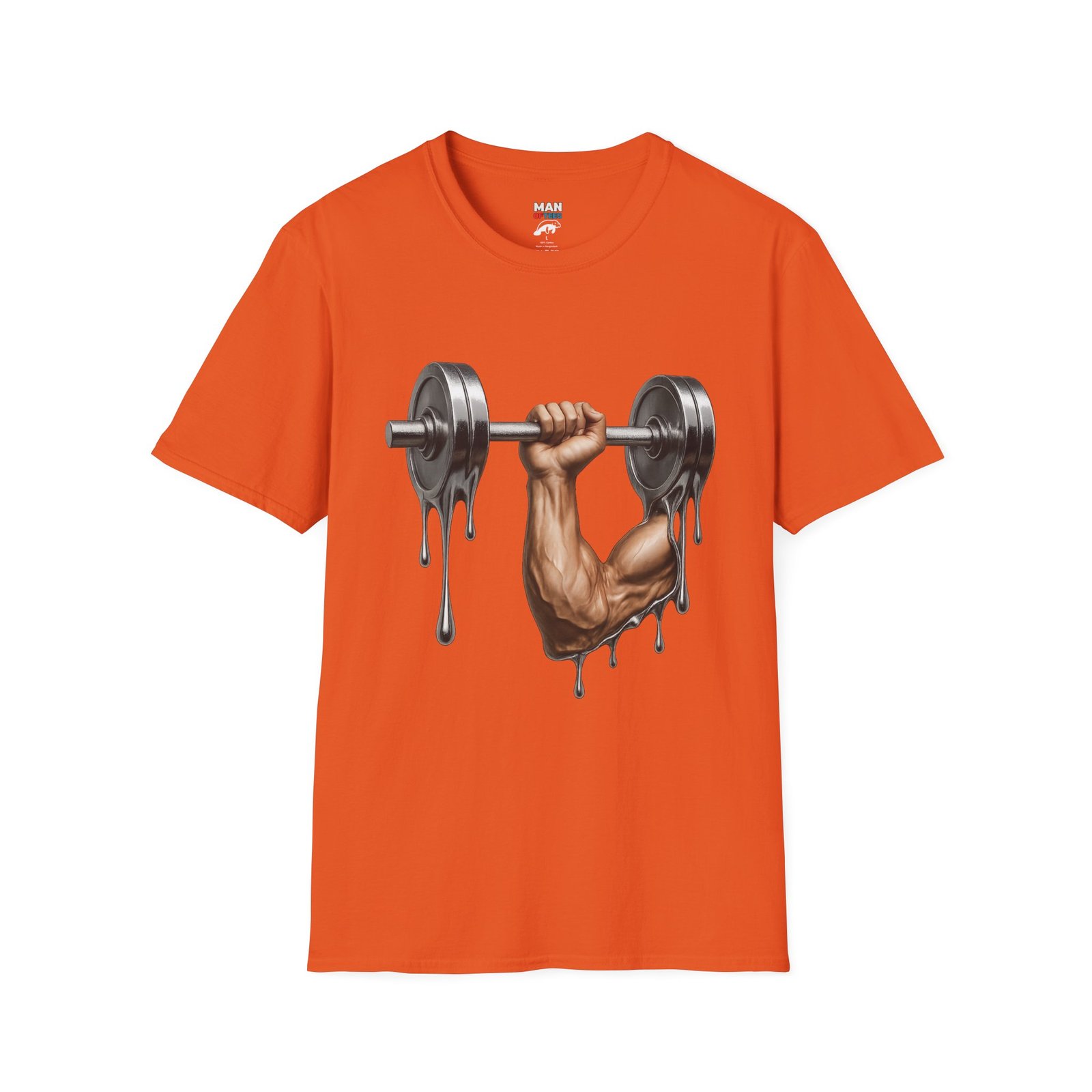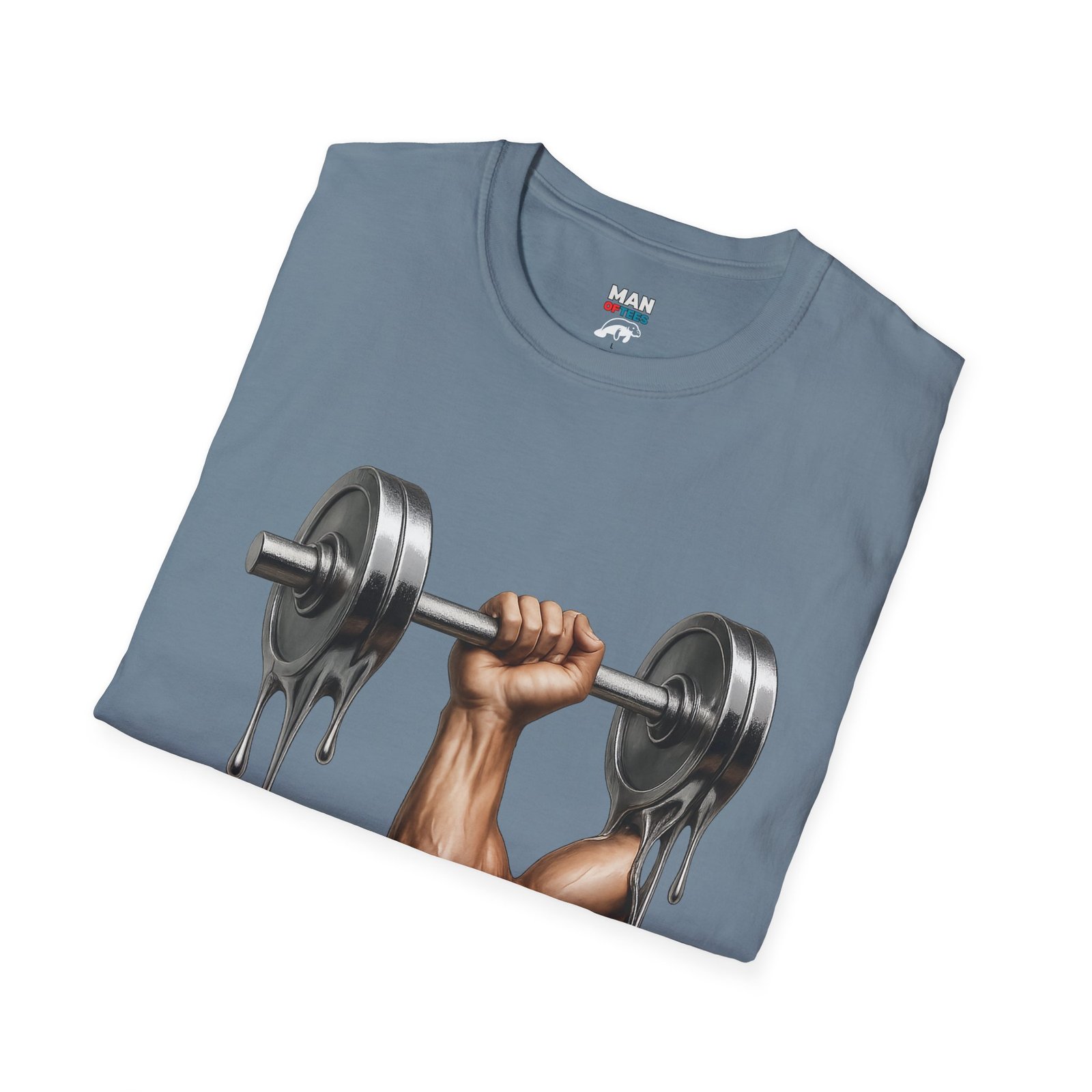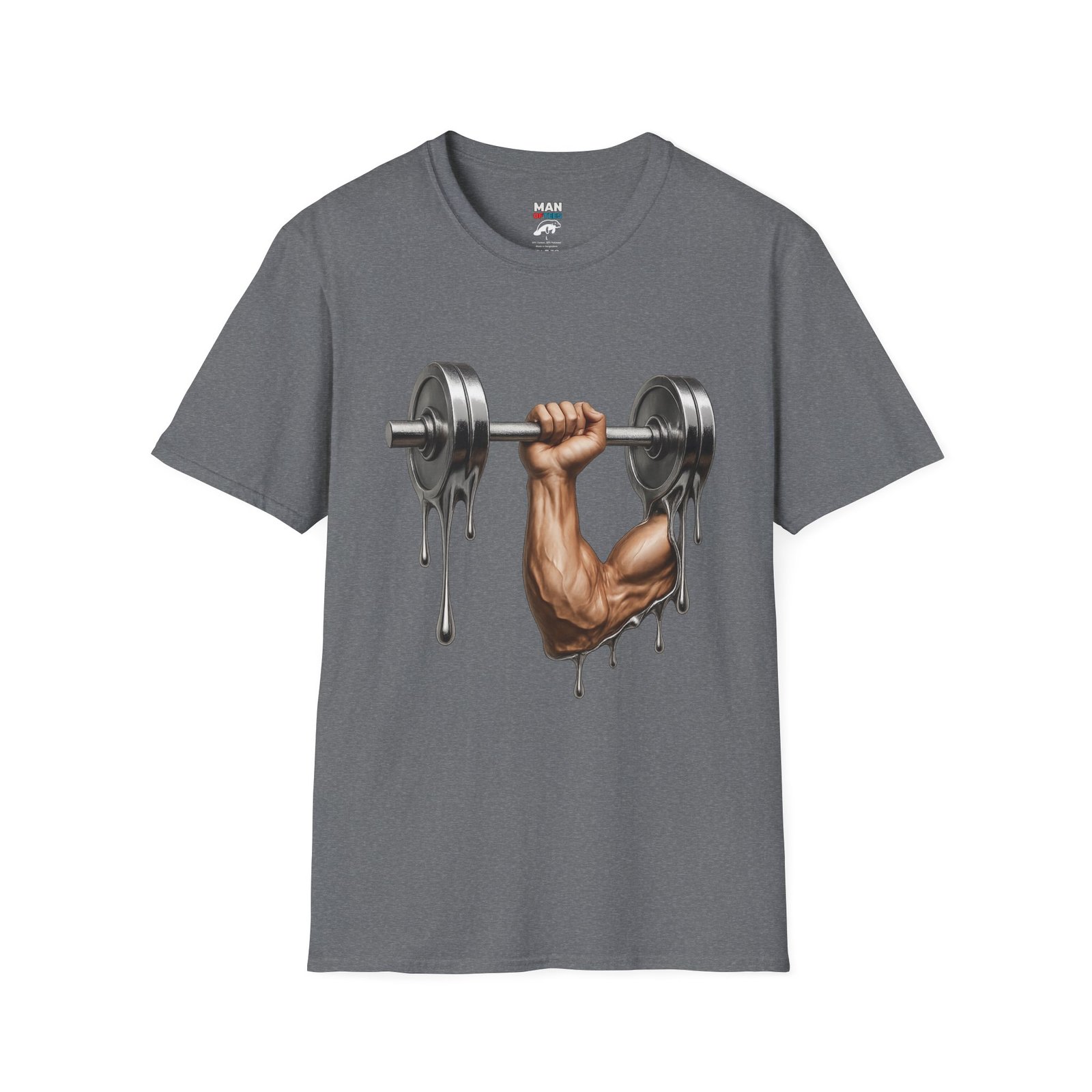A unique T-Shirt featuring a design of a muscular arm holding a melting weight, giving off a strong and resilient vibe. Perfect for fitness enthusiasts and gym lovers. Ideal for occasions like muscle building milestones, gym anniversaries, or fitness celebrations.